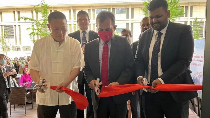 The Embassy of Sri Lanka in Beijing in collaboration with the China Sri Lanka Association for Trade and Economic Cooperation (CSLATE) and the Beijing Wanhongtai Technology Group Co., Ltd. Company opened the first Sri Lanka Tea Shop and Cultural Centre in Beijing on 20 April 2022 in the prestigious Xiu Shui Street, Chaoyang District. The shop with its large outdoor area has been made available to the Ambassador free of charge. This initiative is among a range of activities undertaken by the Embassy to commemorate the 65th Anniversary of establishing diplomatic relations and 70th Anniversary of the Rubber-Rice Pact. The Deputy Secretary General of the Shanghai Cooperation Organisation (SCO), Government officials, representatives from Diplomatic Missions in Beijing, and the Chinese business community attended the event.
