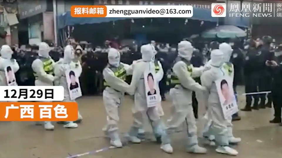 Armed police in Jingxi, in southern China, have paraded four alleged violators of Covid rules through the streets, state media reported, a practice that was banned but which has resurfaced in the struggle to enforce a zero-Covid policy.