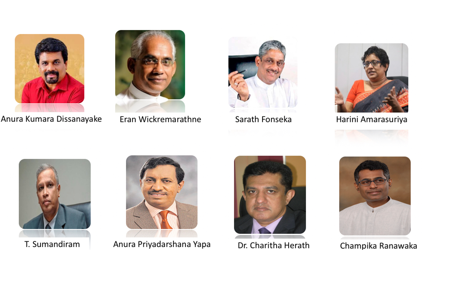 Also People Representatives who stood firmly to protect good governance and won the confidence of the public. The following eight parliamentarians representing the key parties got the top marks. a few others Dr Rajitha Senaratne and Sudarshini Fernandopulle were fearless voices during the height of the pandemic. Harin Fernando, Kumara Welgame, SM Marrika, M Nanayakkara and M Rahaman raised issues fearlessly . Also Sajith Premadasa on grassroots issues and Harsha de Silva on the economy .
