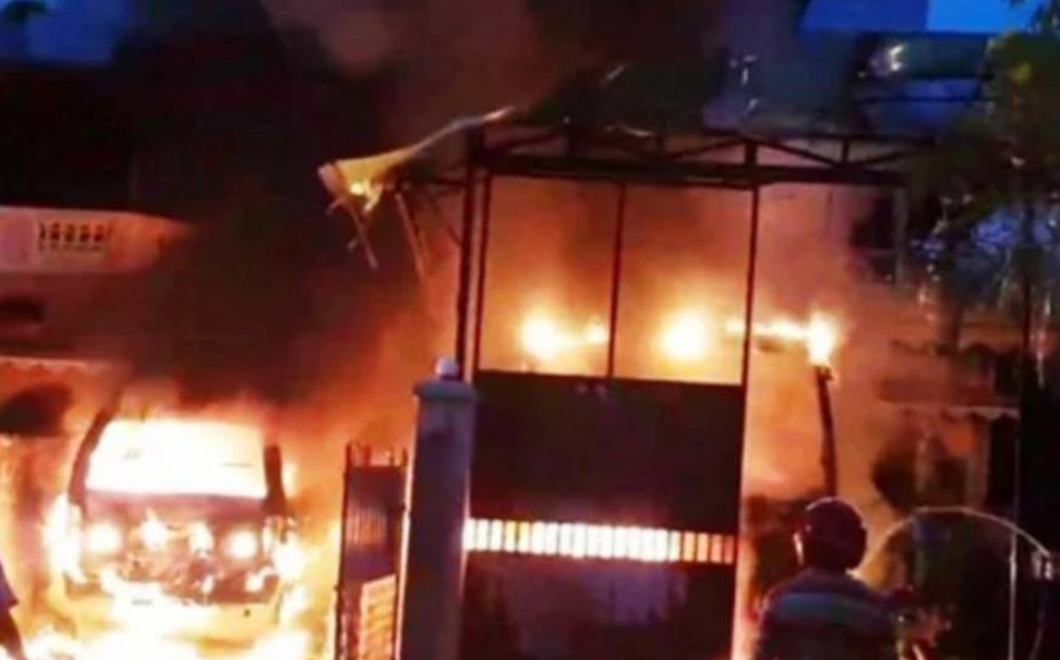 The residence of the Mayor of the Moratuwa Municipal Council Samanlal Fernando has been set on fire and it is reported that the house has been severely damaged by the fire.