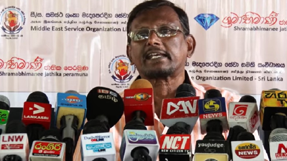 The government of Sri Lanka continues to steal their money, alleged Treasurer of the All Ceylon Middle East Service Union Indika Jayawardena. He demanded that the incentives entitled to the migrant workers be assured in written format.