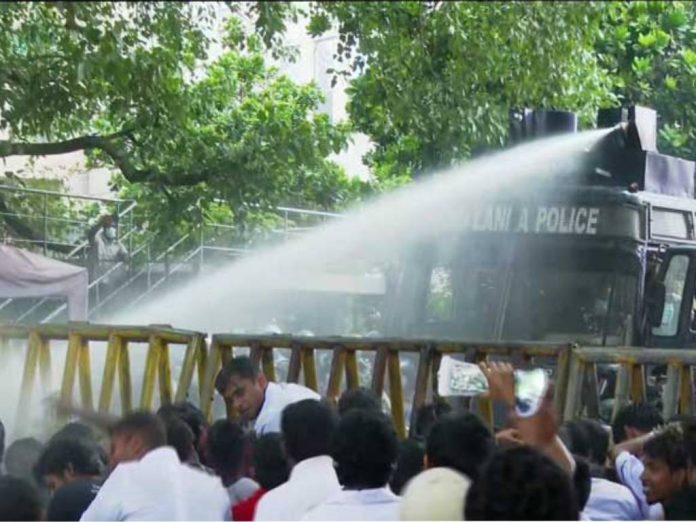 The Police had set up roadblocks near the World Trade Centre and as the medical students attempted to remove the roadblocks and move forward, the Police launched tear gas and water cannons to dissolve the march.
