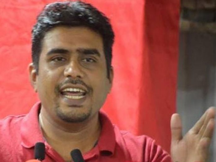 Propaganda Secretary of the Frontline Socialist Party (FSP) Duminda Nagamuwa has been arrested by the Kaduwela Police.