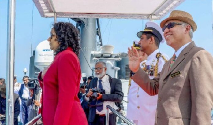 Held off the waters of Galle Face under the banner “Sailing Strong – Together”, the fleet review brought together regional and extra-regional partners in a show of maritime solidarity. Prime Minister Dr Harini Amarasuriya attended as the Government’s representative and took the customary naval salute aboard SLNS Gajabahu, as ships from friendly nations lined up in formation offshore.