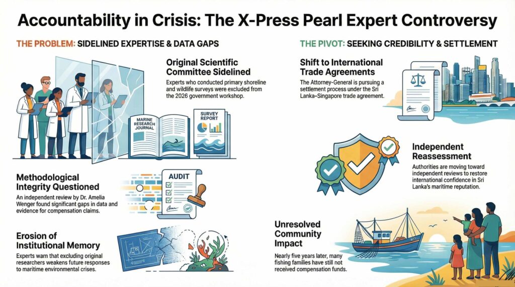 February 05, Colombo (LNW): Several marine scientists who were closely involved in assessing the environmental damage caused by the MV X-Press Pearl disaster have been excluded from a major government workshop intended to strengthen Sri Lanka’s Marine Environment Protection Authority (MEPA).