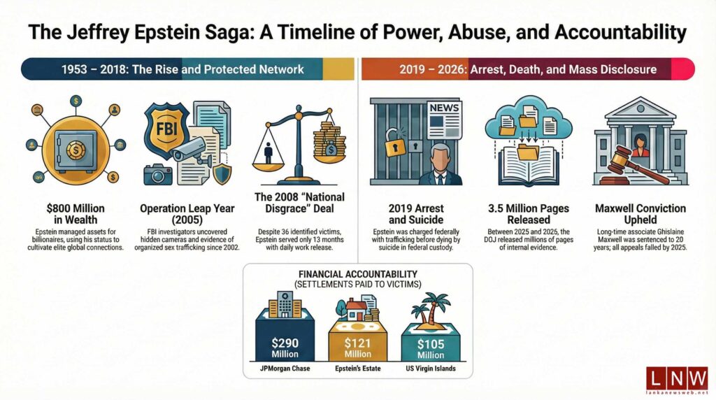 As of 2026, Epstein’s crimes, associates, and the failures surrounding his prosecution remain the subject of global scrutiny.
