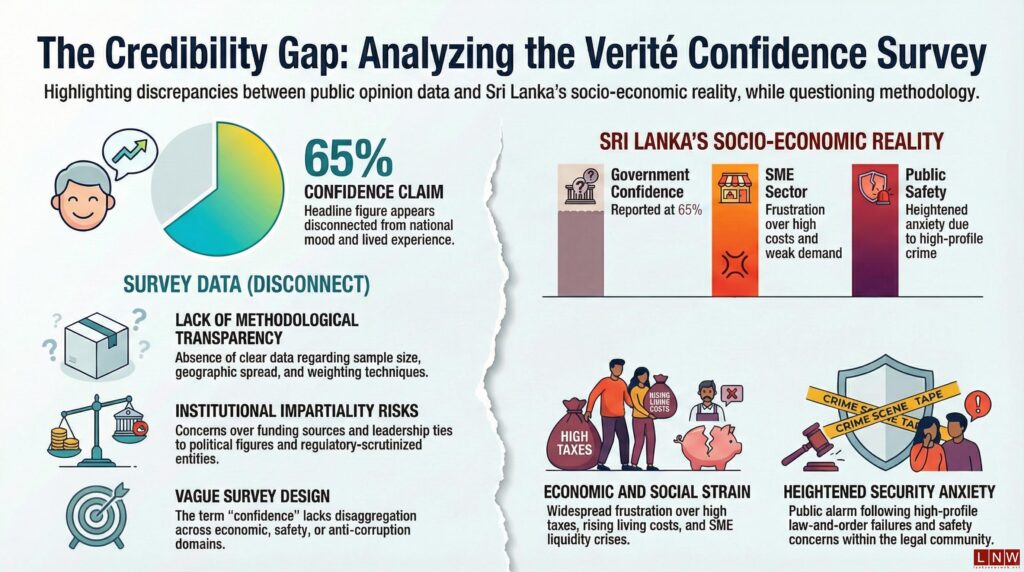 Public trust surveys play an important role in democratic societies. They provide snapshots of public opinion, influence media narratives, and sometimes shape investor sentiment. However, when the methodology, funding sources, or governance of the institution conducting the survey are called into question, the credibility of the findings can quickly erode. The recent survey by Verité Research claiming that government confidence stands at 65% has become a case in point.