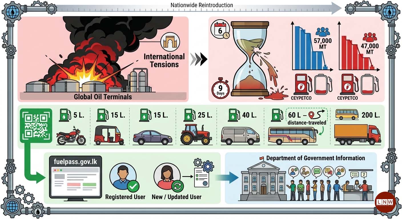 The system also includes revisions for bus allocations, with fuel now being distributed according to distance travelled rather than a fixed amount. Until the updated approach is fully operational, the Sri Lanka Transport Board will continue to manage bus fuel distribution.