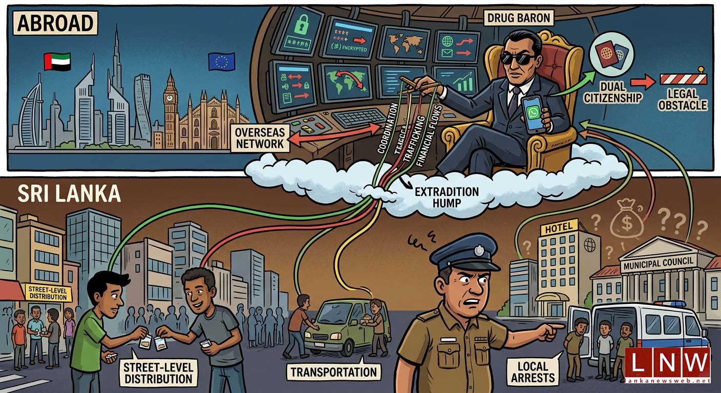 According to investigators, these individuals manage their operations remotely, relying on sophisticated encrypted communication platforms to coordinate trafficking, distribution, and financial flows without setting foot in Sri Lanka. This has created a conduit for them to remain elusive while maintaining firm control over their networks.
