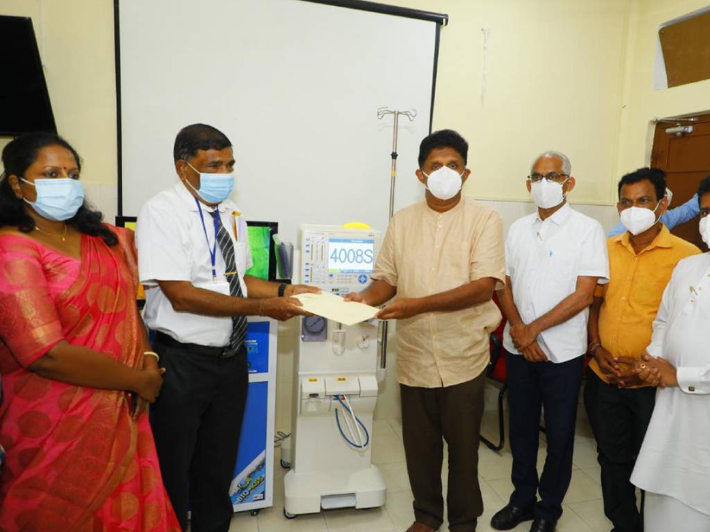 A Dialysis Machine with Portable RO System worth Rs. 2,457,000.00 was donated to the Point Pedro Hospital under the 39th phase of the ‘Jana Suwaya’ project undertaken to build a healthy country as part of the Samagi Jana Balawegayen Husmak initiative.