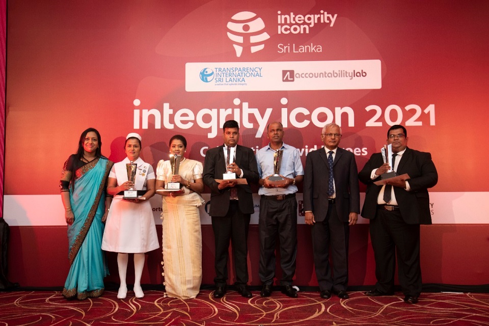 Transparency International Sri Lanka on Tuesday (Jan. 11) held the award ceremony of the Integrity Icon 2021 program at the BMICH in Colombo, to recognise and honour the public sector Covid heroes of Sri Lanka.