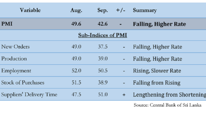 Sri Lanka manufacturing sector continued contraction in September whilst the services sector limped to marginal growth as per the Central Bank Purchasing Managers Indices (PMI).