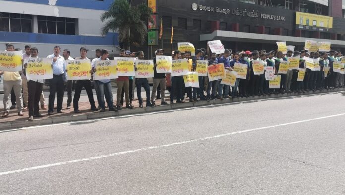 Employees in the sector yesterday staged yet another protest in Colombo demanding immediate settlement of dues.