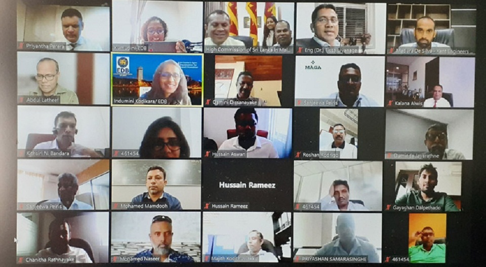 The Sri Lanka High Commission in Maldives and the Sri Lanka Export Development Board (EDB) jointly organized a virtual meeting for Sri Lankan Construction Services Companies to interact with the SME & Entrepreneur Federation of Maldives (SEFM), Maldives Contractors’ Association to initiate action in this regard.