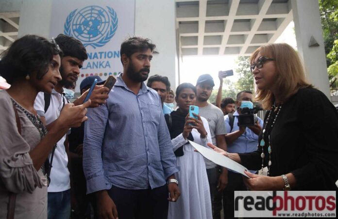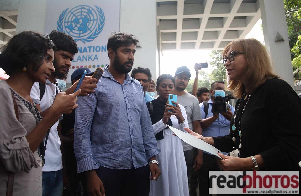 Meanwhile, the passive resistance campaigners handed over a letter the United Nations Resident Coordinator in Sri Lanka Hanaa Singer-Hamdy. As she herself arrived in the premises, Ms. Singer informed the campaigners that the United Nations is following the case and will take necessary measures in compliance with the letter.