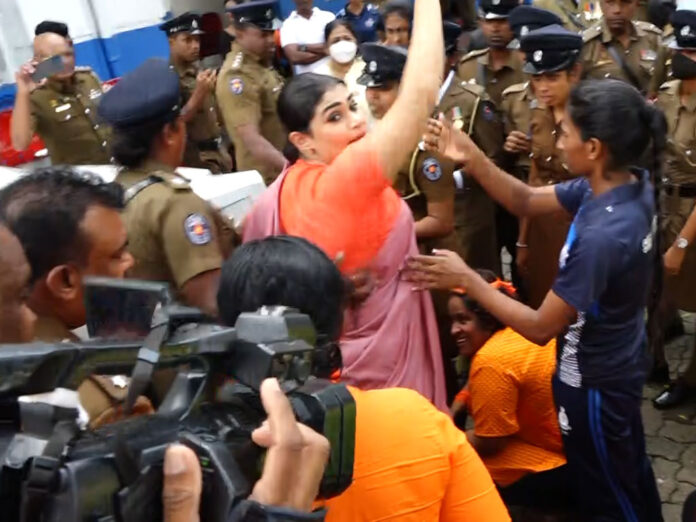 The group led by the ex MP was arrested for protesting against the Police over an arrest made by the Police on a group of women who staged a street drama in front of the United Nations Office in Colombo in objection to violence against women.