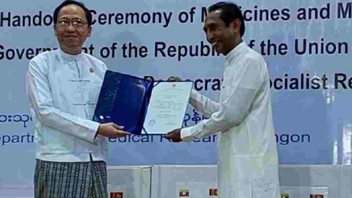The consignment was officially handed over to the Ambassador of Sri Lanka to Myanmar Janaka Bandara, by the Union Health Minister of Myanmar Dr. Thet Khaing Win, in a handing over ceremony held at the Department of Medical Research in Yangon.
