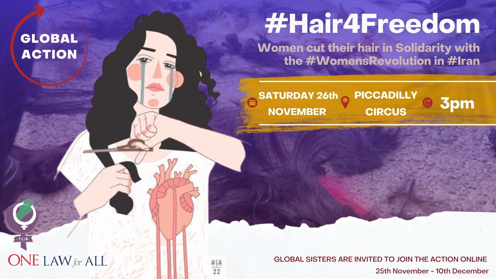 - Join One Law for All and FiLiA in Piccadilly Circus, London on 26th November at 3pm for a mass hair-cutting.