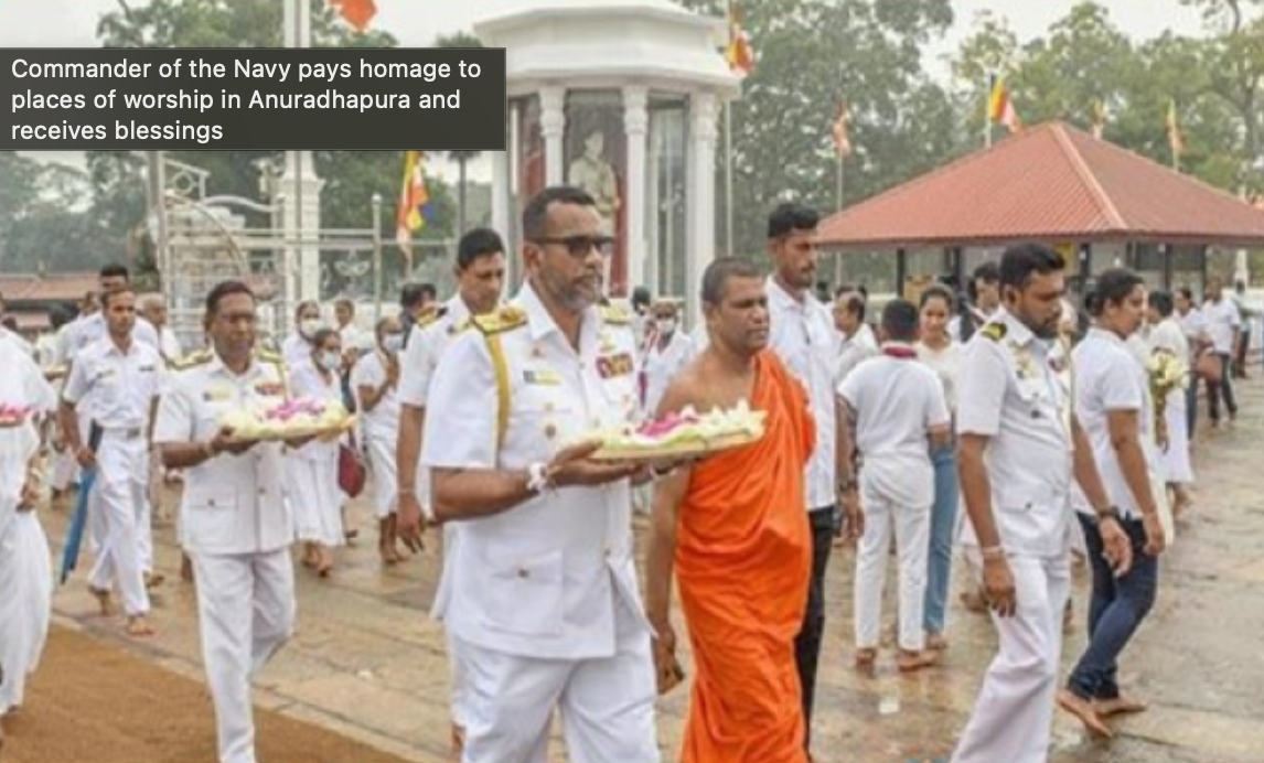 Commander of the Navy first paid his homage to sacred Jaya Sri Maha Bodhi in Anuradhapura and called on Atamasthanadipathi, Chief Sanghanayake of “Nuwara Kalaviya”, Most Venerable Pallegama Sirisumana Rathanapala Hemarathana Nayake Thera and received his blessings for future endeavors of the Navy. Subsequently, he visited Lankaramaya, Ruwanweliseya, Jethawanaramaya, Isurumuniya, Abayagiriya, Thuparamaya, Mirisawetiya as well as Sandahiru Seya and paid his homage in pious sentiments.