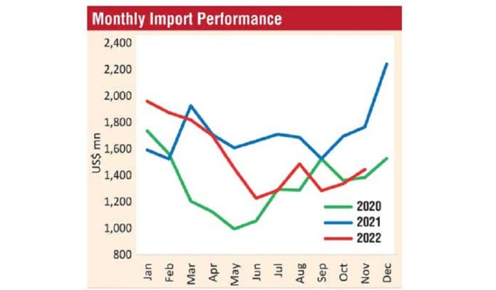As per external trade data released by the Central Bank recently imports in November amounted to US $ 1.44 billion, up 8 percent from $ 1.33 billion in October and highest since $ 1.48 billion in August.