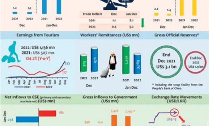 Sri Lanka’s external sector performance has been resilient with high export earnings, decline in imports, lowests trade deficit, moderate foreign remittances and recovery in tourism in 2022.