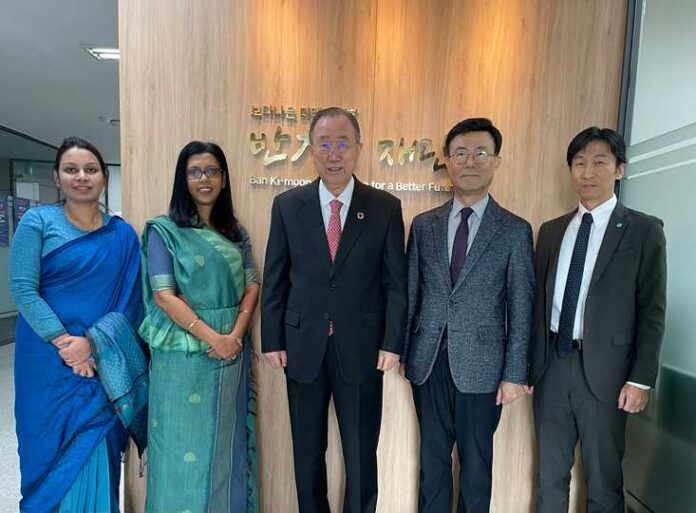 Ambassador of Sri Lanka to the Republic of Korea Savitri Panabokke met with former UN Secretary General and President and Chair of the Global Green Growth Institute Ban Ki Moon on 1 February 2023 at the Ban Ki Moon Foundation in Seoul.