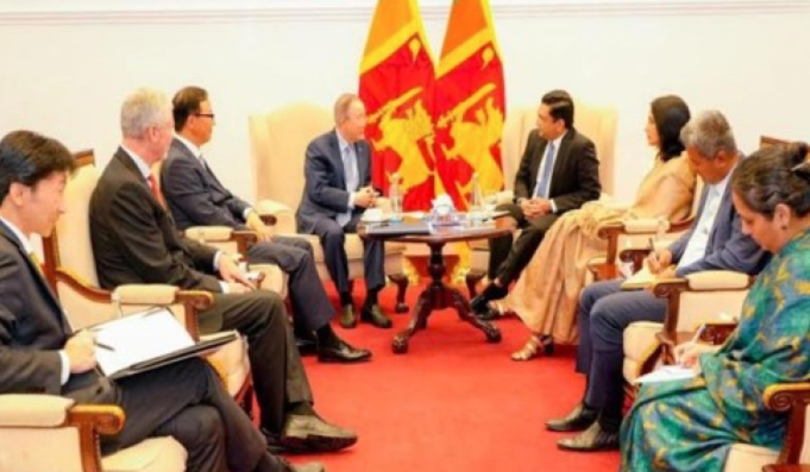 The former UNSG was accompanied by the Ambassador of the Republic of Korea Santhush Woonjin Jeong, CEO of GGGI Dr. Frank Rijsberman, and officials of the GGGI office in Sri Lanka. Foreign Secretary Aruni Wijewardane and senior officials of the Foreign Ministry were associated with the meeting.