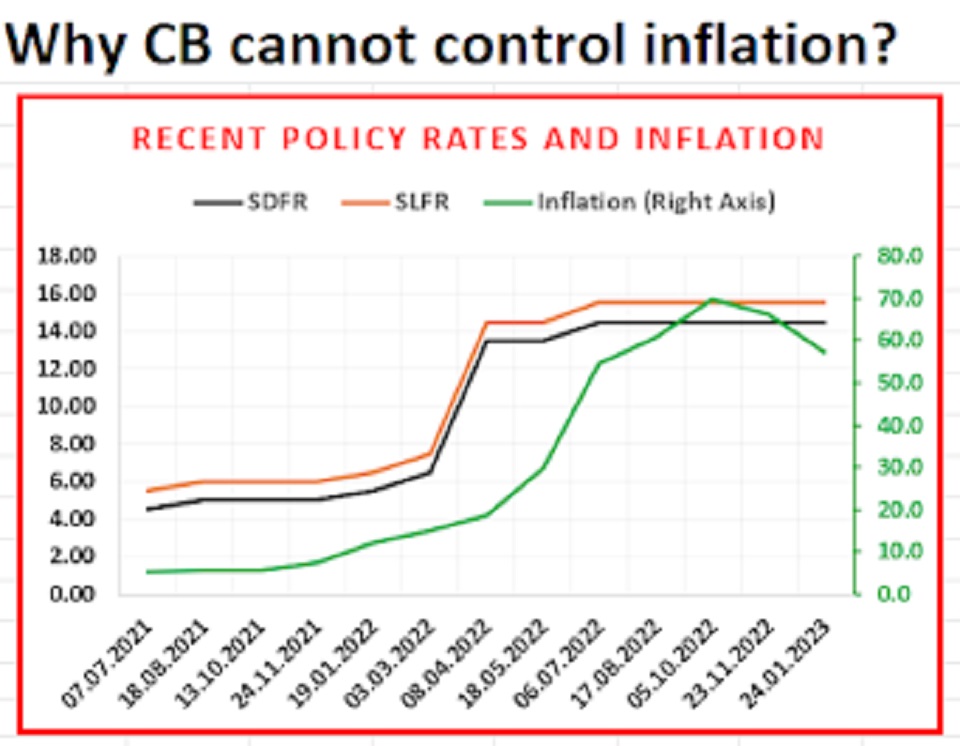 - Fourth, policy interest rates corridor is no more relevant for the policy transmission as the CB has imposed limits or rationing on its overnight standing deposit and lending operations with effect from 16 January 2023. As a result, money market volatility and manipulations seen at present have potentials of even hitting systemic risks in the current context.