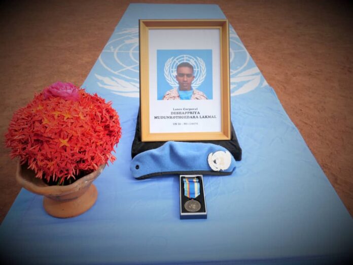 Colombo (LNW): Peacekeeping troops of the United Nations Multidimensional Integrated Stabilisation Mission in Mali (MINUSMA) on Thursday (16) formally presented a military salute and bid farewell to the late Lance Corporal M.G.L Deshapriya (42) of the 6 Sri Lanka Army Service Corps who had passed away on 11 February 2023 following a sudden cardiac arrest upon admission to the MINUSMA Bamako Level – 3 Hospital.
