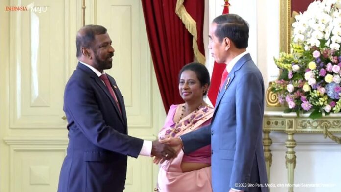 Ambassador of Sri Lanka to Indonesia Admiral Professor Jayanath Colombage presented credentials to President of the Republic of Indonesia Joko Widodo on 20 February 2023 at the Istana Merdeka, the Presidential Palace in Jakarta.