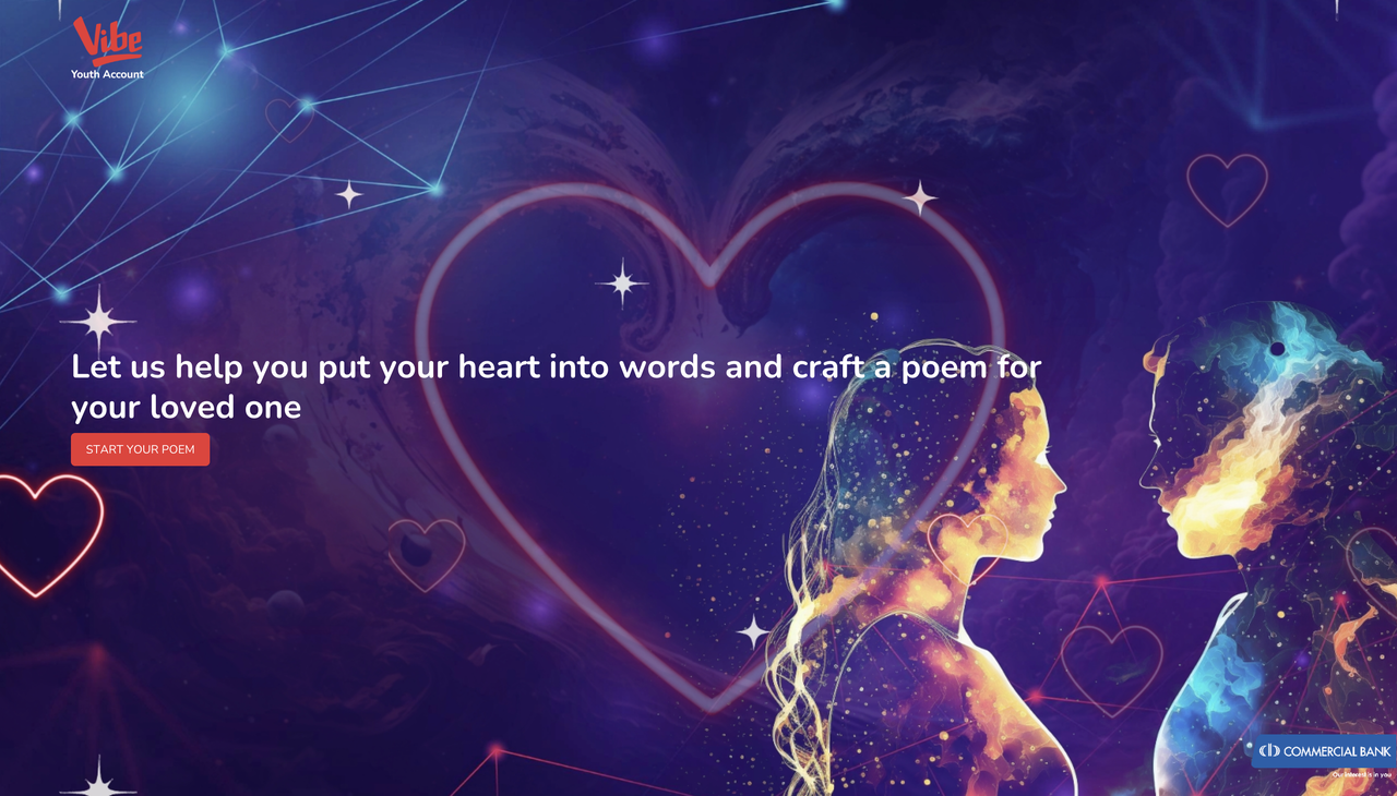 Commercial Bank of Ceylon PLC marked Valentine’s Day 2023 with a unique AI-driven campaign spearheaded by the Bank’s Vibe Youth Account. A special microsite, www.thevibeaccount.com, was launched, helping and encouraging the youth to “put their heart into words”, where anyone could have AI write a customized poem for their Valentine or loved one. Users simply had to provide their contact details and some interesting information about their loved one, and TheVibeAccount would then use AI to create a catchy, personalized and heartfelt poem. This initiative was powered by ChatGPT, the AI Language Model that is presently taking the world by storm, and was the first AIdriven campaign in Sri Lanka’s banking space. The facility remains available for public use, and is subject to moderation by the Bank.