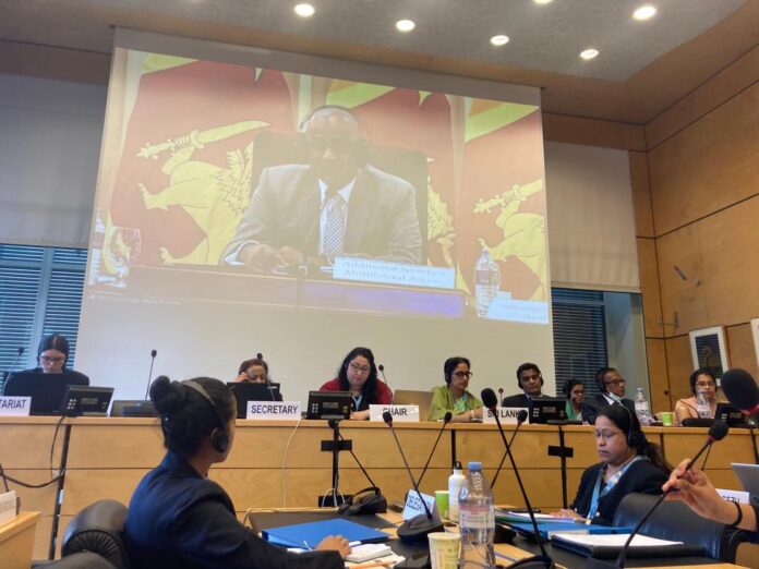 In her opening statement, the Head of the Sri Lanka Delegation Permanent Representative of Sri Lanka to the UN in Geneva Ambassador Himalee Arunatilaka, said that since the submission of Sri Lanka’s 6th Periodic Report in 2019, many significant developments in the country have taken place, including the enactment of the 21st Amendment to the Constitution, further strengthening democratic governance through the Constitution, Regulation of Election Expenditure Act, amendments to the Prevention of Terrorism Act and drafting of anti-terrorism legislation, reconciliation through independent domestic mechanisms, convening of an  All Party Conference, establishment of a Cabinet Sub-Committee on Reconciliation and release of land held by military for security purposes in the North and the East to the legitimate owners. Ambassador Arunatilaka also pointed out that the period under review posed unprecedented socio-economic challenges for Sri Lanka and the Government’s main objective during the past year was to restore economic and political stability and on delivering urgent socio-economic necessities.