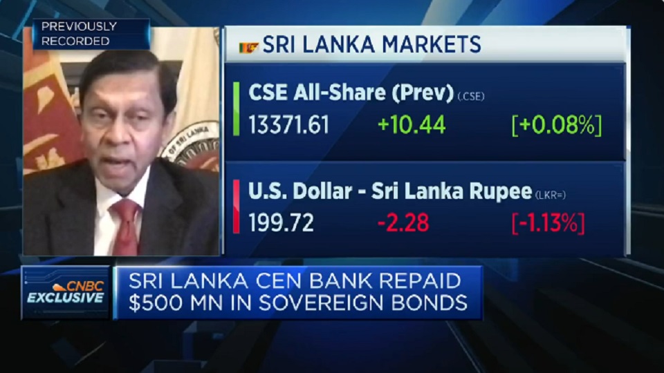 Governor of the Central Bank of Sri Lanka (CBSL) Ajith Nivard Cabraal demonstrated how Sri Lanka is planning to repay the US$6.9 billion in foreign debt due this year, joining live with Squawk Asia (CNBC) this (26) afternoon.