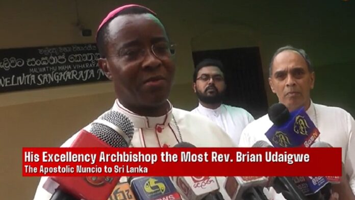 The Apostolic Nuncio to Sri Lanka made this remark during his visit to Kandy to meet with the Chief Prelates of the Asgiri and Malwathu Chapters and to visit the Temple of the Scared Tooth Relic.