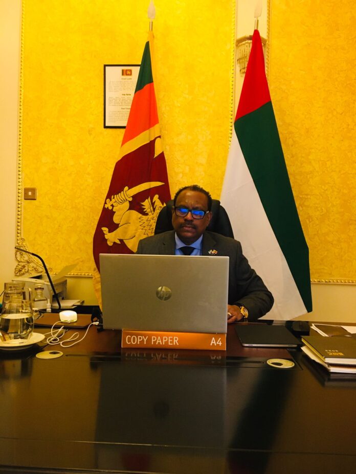 Ambassador of Sri Lanka to the United Arab Emirates, Udaya Indrarathna delivered the Keynote speech on 23 May 2023 on game changing strategically important trade relations between Sri Lanka and UAE at the webinar “Made for Trade Live – Sri Lanka in Focus” organized by the Dubai Multi Commodities Centre (DMCC).