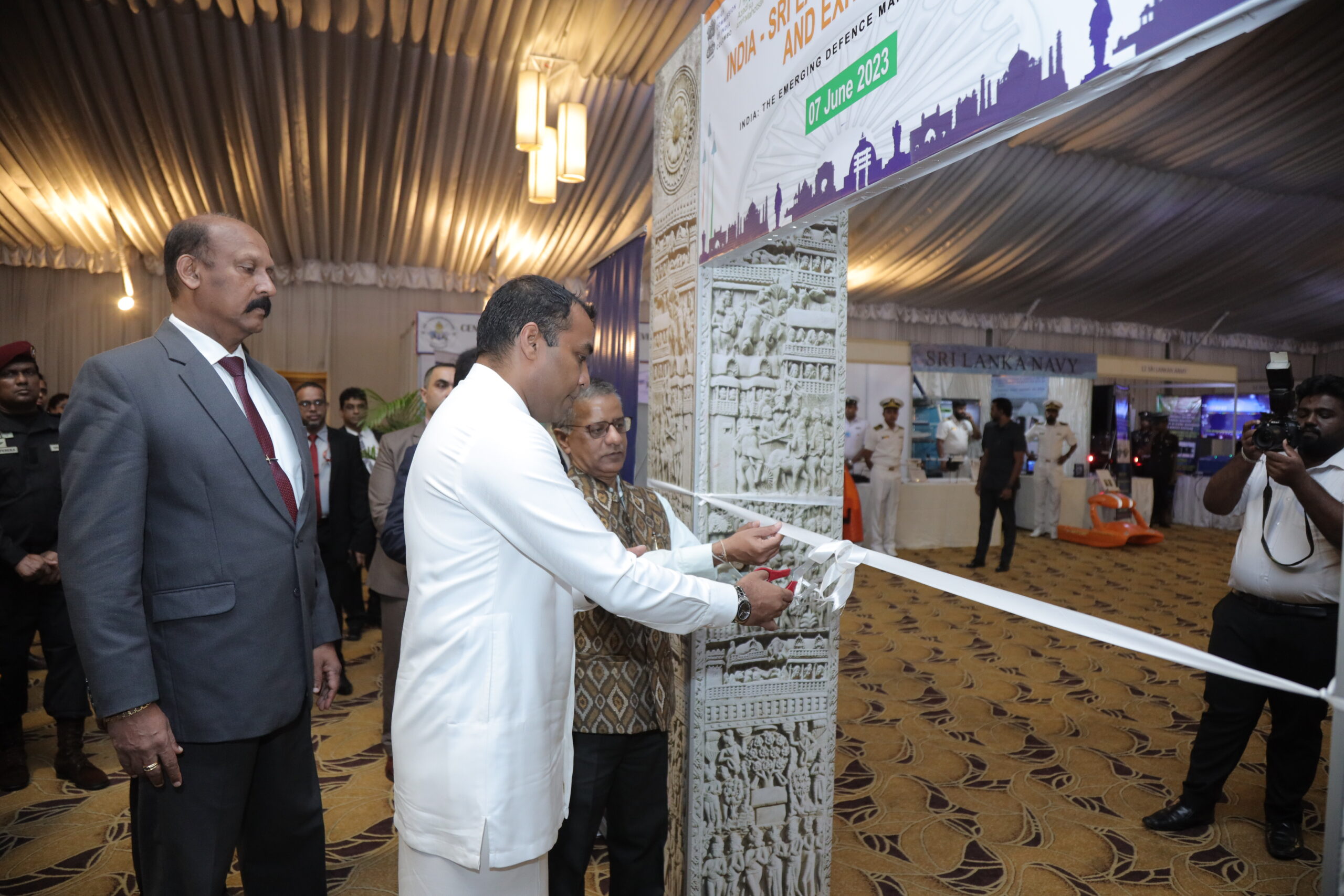 High Commission of India organized the first Seminar cum Exhibition on Defence on 7 June 2023 in Colombo. Hon. Pramitha Bandara Tennakoon, State Minister of Defence was the Chief Guest of the event. High Commissioner H.E Gopal Baglay, Defence Secretary, Chief of Defence Staff, Commander of Sri Lanka Navy and other senior officers from Sri Lanka Armed Forces, Police and Special Task Force also participated. In addition, representatives from 16 leading Indian Defence companies such as Hindustan Aeronautics Limited, Goa Shipyard Limited, and Bharat Electronics Limited were also a part of the event. It also witnessed enthusiastic attendance by local industry representatives from Sri Lanka.
