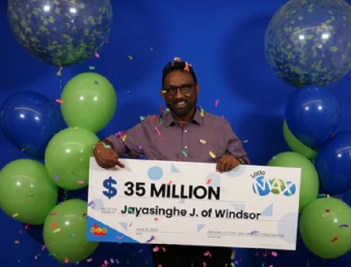 Jay Jayasinghe, a resident of Windsor and originally from Sri Lanka, has struck gold by claiming the top prize of $35 million from the June 6 draw of the Ontario Lottery and Gaming Corporation’s (OLG) Lotto Max. Jayasinghe, who expressed his long-held hope for such an opportunity, plans to enjoy his winnings by purchasing a new Dodge Charger Hellcat and embarking on a cross-country trip across Canada.