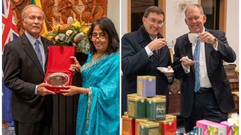 A Ceylon Tea stall was also set up to promote ‘Ceylon Green Tea’ given the increasing demand of Australians for sustainable, nutrient rich and a healthy drink. The Sri Lanka Tea Board sponsored ‘Ceylon Green Tea Stall, while ‘Dilmah’, a prominent Ceylon Tea exporter in the Australian marked provided gift tea (flavoured green tea) to the invitees. Ceylon tea promotion videos depicting ‘sustainable-grown’ variety of Ceylon tea for the world market were screened at the reception. The event was held alongside a live demonstration on ‘Ceylon Green Tea Tasting Session’ by the staff of the Mission.