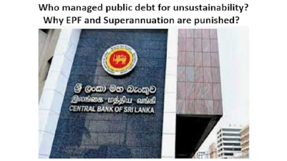 - However, the EPF is again victimized through the DDO for domestic debt unsustainability proposed by same officials including the present CB Governor. He and Secretary to the Treasury and several senior CB officials who were involved in debt management and monetary policy and enjoyed with high ranking IMF positions had the opportunity to resolve the debt unsustainability problems well in advance with the help of the IMF, especially under two latest IMF programmes 2009-12 and 2016-20. In fact, nobody cared for implementing the Active Liability Management Act that was passed in 2018 for debt restructuring purpose. However, the Monetary Board unlawfully used the additional 10% borrowing limit permitted under this Act to raise more debt to finance the budget deficit.