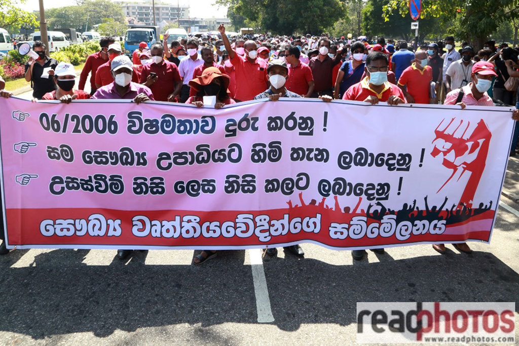 Coincided with the continuous strike action launched by the Academy of Health Professionals yesterday (07), a demonstration was carried out from the Vihara Maha Devi Park premises to the Ministry of Health.