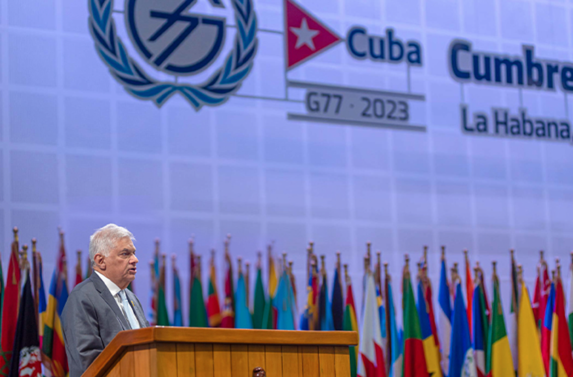 Commencing his address, President Wickremesinghe commended Cuban President Miguel Diaz-Canel Bermudez for hosting the Group of 77 plus China (G77+China) Summit in Havana, acknowledging Cuba’s historical role as a champion for the concerns and aspirations of developing nations in various multilateral forums.