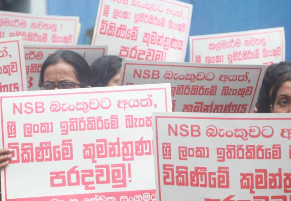 A protest campaign was organized in the afternoon on October 4th at Sri Lanka Savings Bank’s Borella Ward Place branch. The campaign aimed to oppose the alleged conspiracy to sell the National Savings Bank of Sri Lanka and to demand immediate solutions for various grievances.