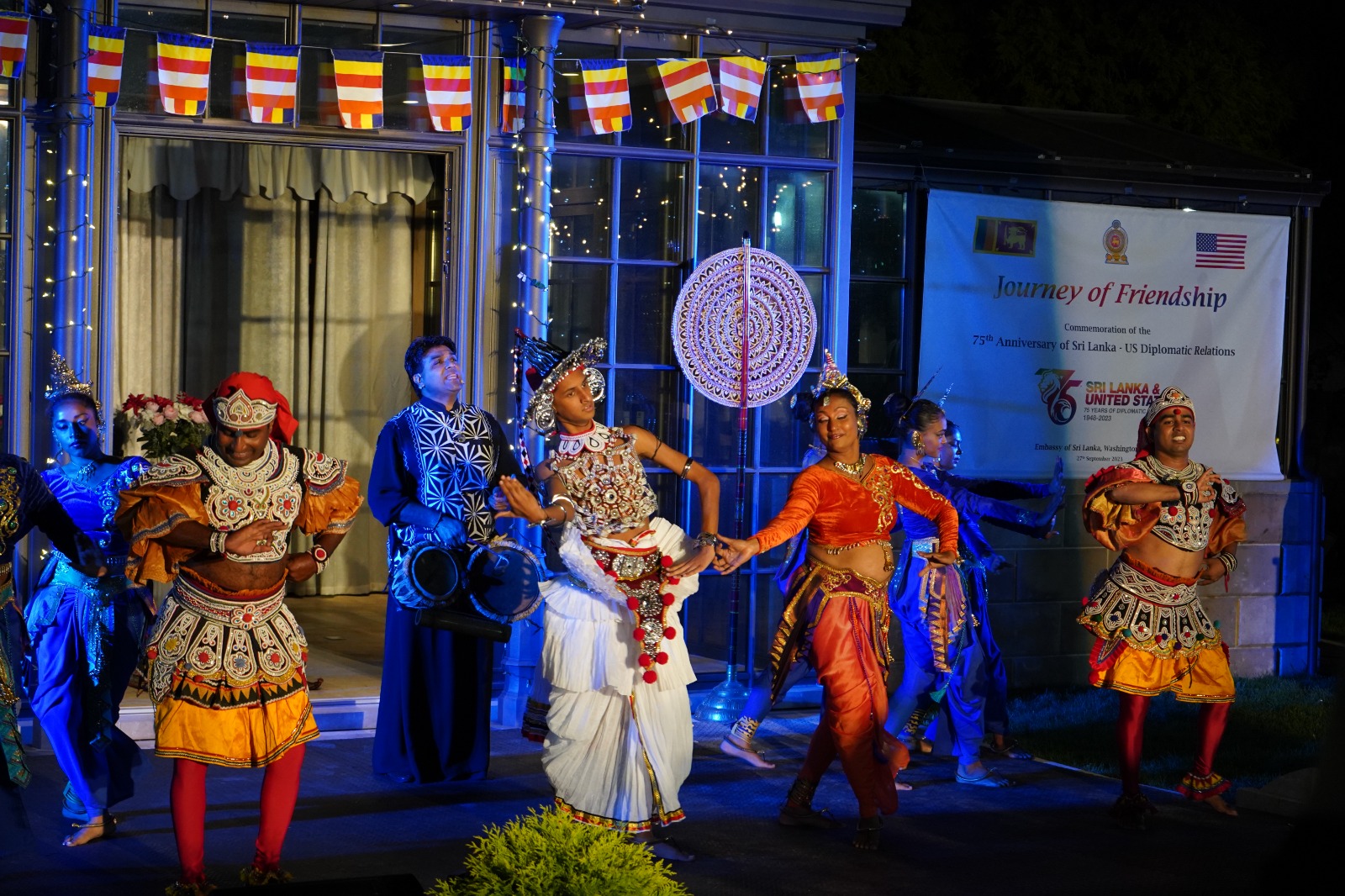 The Embassy of Sri Lanka in Washington D.C. on Wednesday (27) held a reception including aseries of cultural performances to celebrate the 75th anniversary of bilateral diplomatic relations between Sri Lanka and the United States of America. The event was held under the patronage of Chief Guest, M.U.M. Ali Sabry, Foreign Minister of Sri Lanka. Ambassador of Sri Lanka to the United States, Mahinda Samarasinghe, the host on the occasion, welcomed the guests – special invitees from the U.S. government including the White House, Departments of State, Defense, Treasury, Commerce, the IMF/World Bank, members of the diplomatic corps and members of the Sri Lankan community, represented by several associations from the District of Columbia, Maryland and Virginia, among other guests.