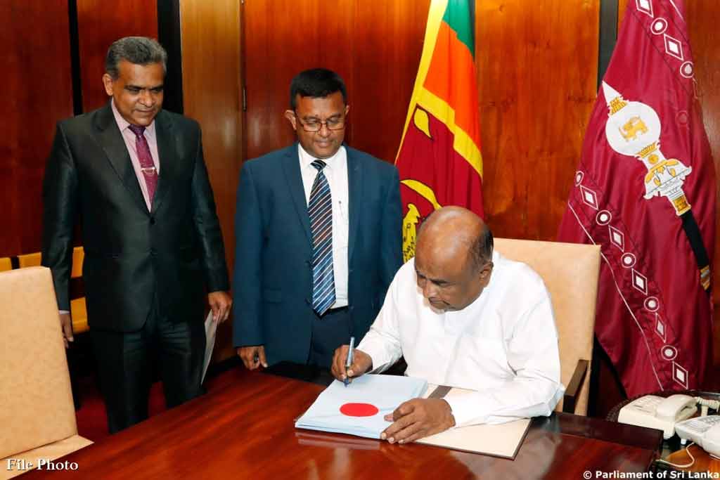 Hon. Mahinda Yapa Abeywardana, Speaker of Parliament endorsed the certificate on 05 Bills Oct- (17) which were passed in Parliament during the previous week.Accordingly, the Hon. Speaker endorsed the certificate on the Bills Civil Procedure Code (Amendment), Elections (Special Provisions), National Eye Bank Trust of Sri Lanka, Sri Lanka Ports Authority (Amendment) and Civil Aviation (Amendment).