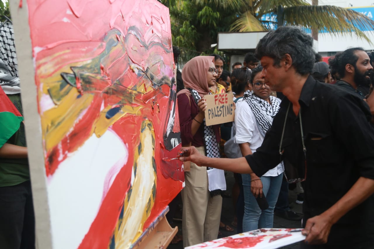 Esteemed artist Sujith Ratnayake unveiled a painting as his manifesto advocating for Palestine’s freedom, while others added melodies and vocals.