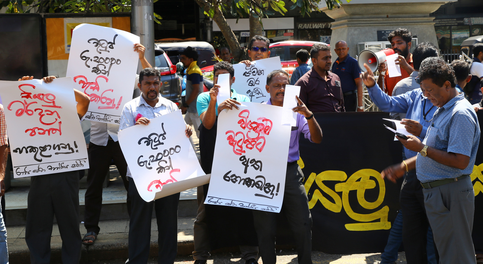 The affiliated trade union alliance held a protest in front of the Fort railway station today (10) afternoon.