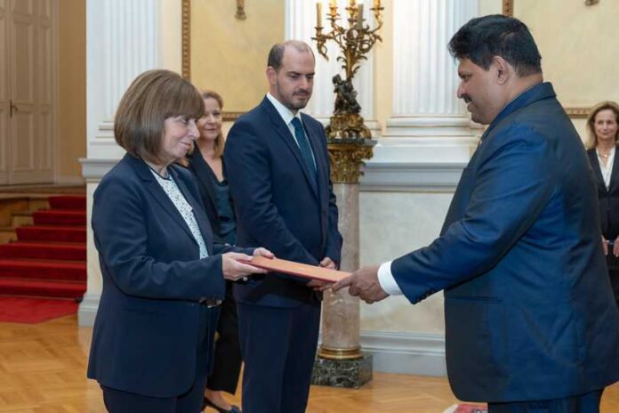 At the Credential Ceremony, Ambassador conveyed the greetings of President Ranil Wickremesinghe to President Sakellaropoulou.