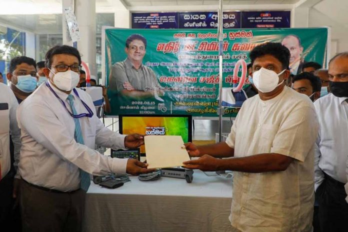 Essential hospital equipment worth Rs. 2,990,000 were donated to the Base Hospital, Samanthurai yesterday (15) under the ‘Jana Suwaya’ corporate social responsiblity project undertaken by the Samagi Jana Balawegaya (SJB) to build a healthy country as part of the ‘Samagi Jana Balawegayen Husmak’ based on a concept by Leader of the Opposition Sajith Premadasa