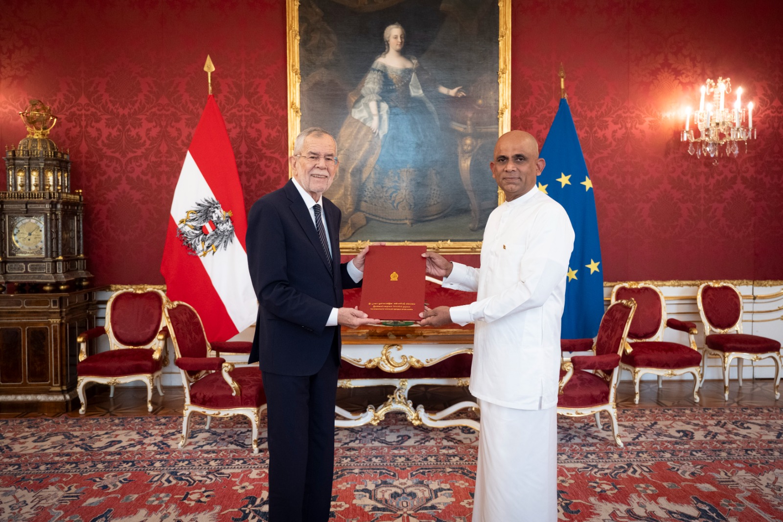 Ambassador M. R. K. Lenagala presented Letters of Credence accrediting him as the Ambassador Extraordinary and Plenipotentiary of Sri Lanka to Austria to the Federal President of the Republic of Austria Alexander Van der Bellen at the Hofburg Palace in Vienna on 21 November 2023.