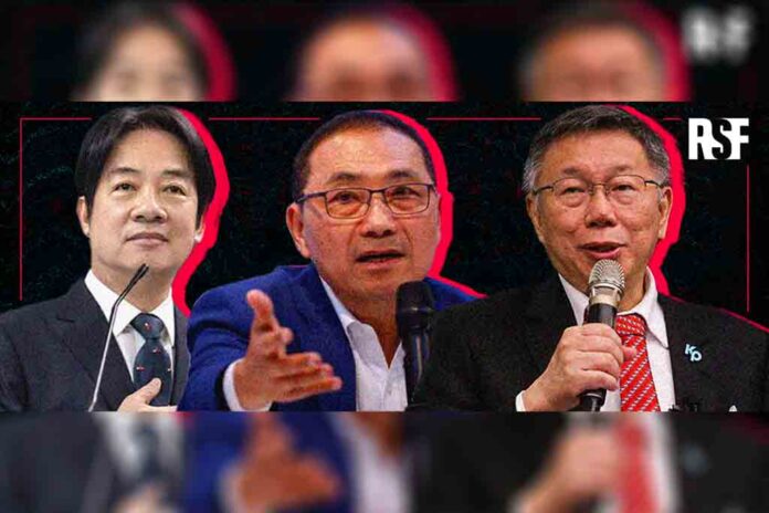 RSF thus addresses candidates from the three main parties contesting the presidential elections: Democratic Progressive Party represented by Lai Ching-te and Hsiao Bi-khim, Kuomintang represented by Hou Yu-ih with Jaw Shaw-kong, and Taiwan People’s Party represented by Ko Wen-je with Cynthia Wu.